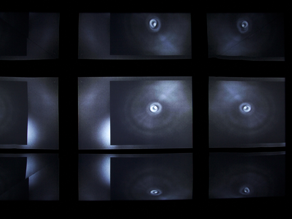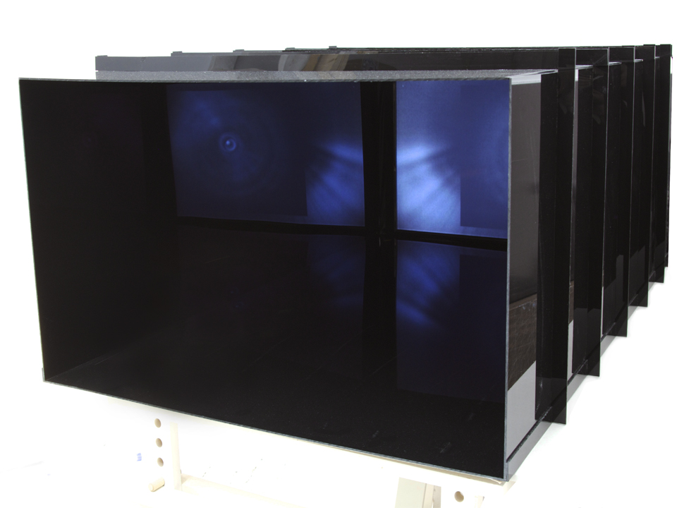 Fossé, 2011 L’œuvre vidéographique présentée dans une boîte de plexiglas noire engendre des interstices ou des anomalies dans un espace qui nous apparaît, de manière générale, homogène. Pour visionner la vidéo, le spectateur est invité à se pencher légèrement pour faire pénétrer sa tête à l’intérieur de la boîte. Le plexiglas possédant des propriétés réfléchissantes, la vidéo projetée au fond du prisme se multiplie sur toutes les parois intérieures. Ainsi, l’image lumineuse acquiert une expansion et un volume inattendus. À l’intérieur de la boîte, l’espace devient une matière souple et malléable. Il s’ouvre et se déplie à l’infini. © ivanovstoeva